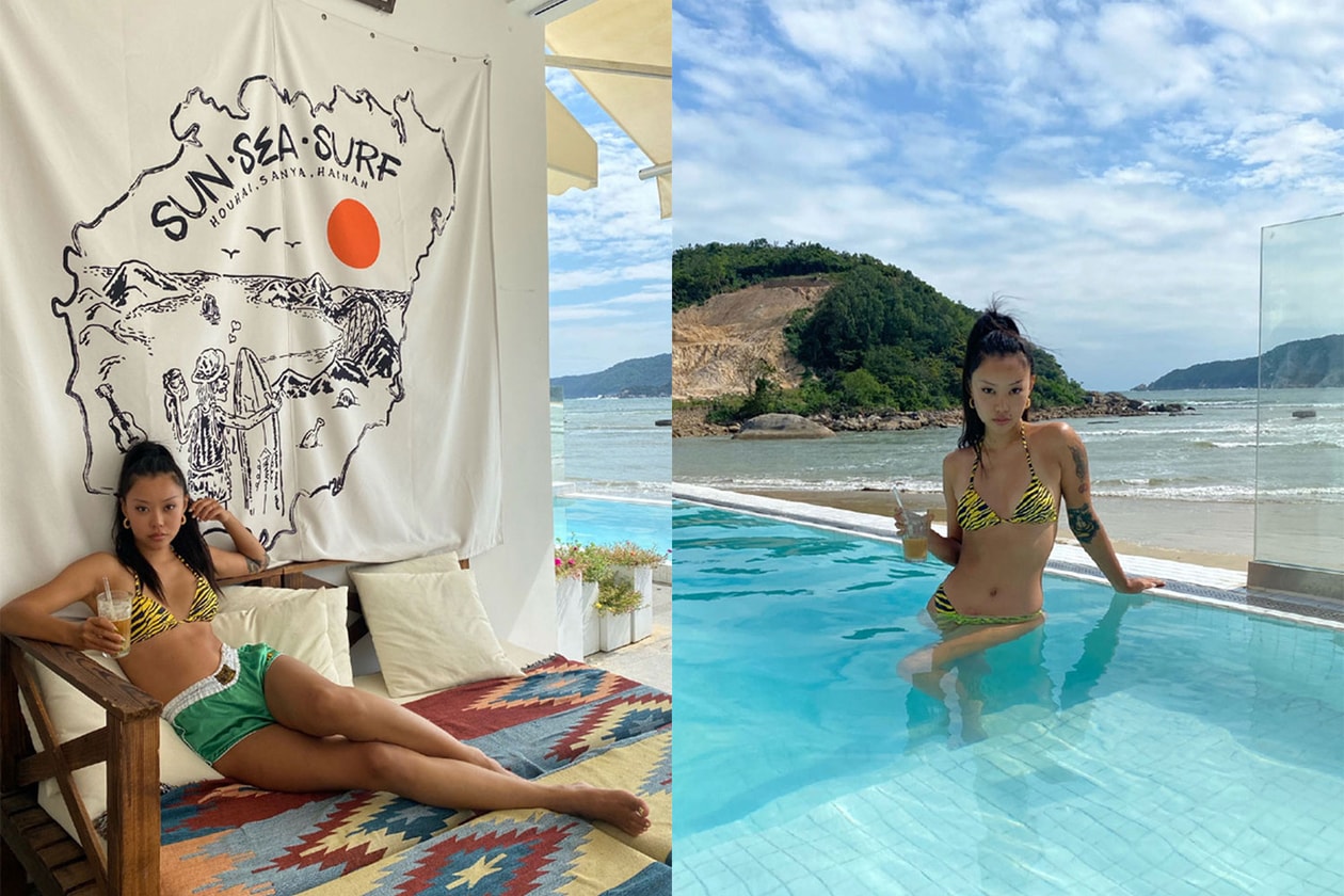 在等发型完成的空档,Mia 聊起了上一次在三亚的生活,放松地晒太阳、冲浪与休息,不需要想太多。不幸的是,Mia 在冲浪时被一个巨大的浪拍到,回沪后因为骨折修养了好久,最近才刚刚继续自己的泰拳训练。